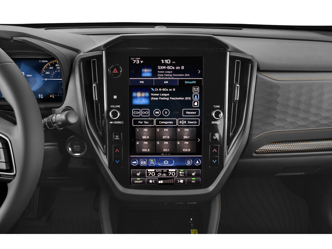Step inside the cabin and you'll be greeted by a spacious and well-appointed interior. The heated front bucket seats, wrapped in Textured StarTex upholstery, offer exceptional comfort and support. The 60/40 split-folding rear seats provide ample cargo space, making it easy to accommodate all your gear. The Subaru Multimedia Plus System with an 11.6-inch touchscreen display puts advanced connectivity and navigation at your fingertips.