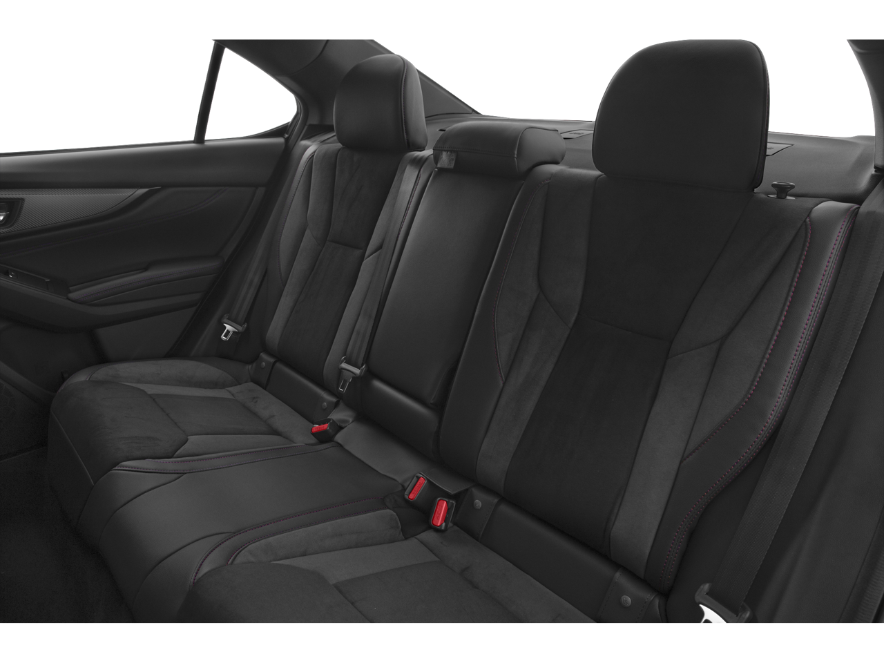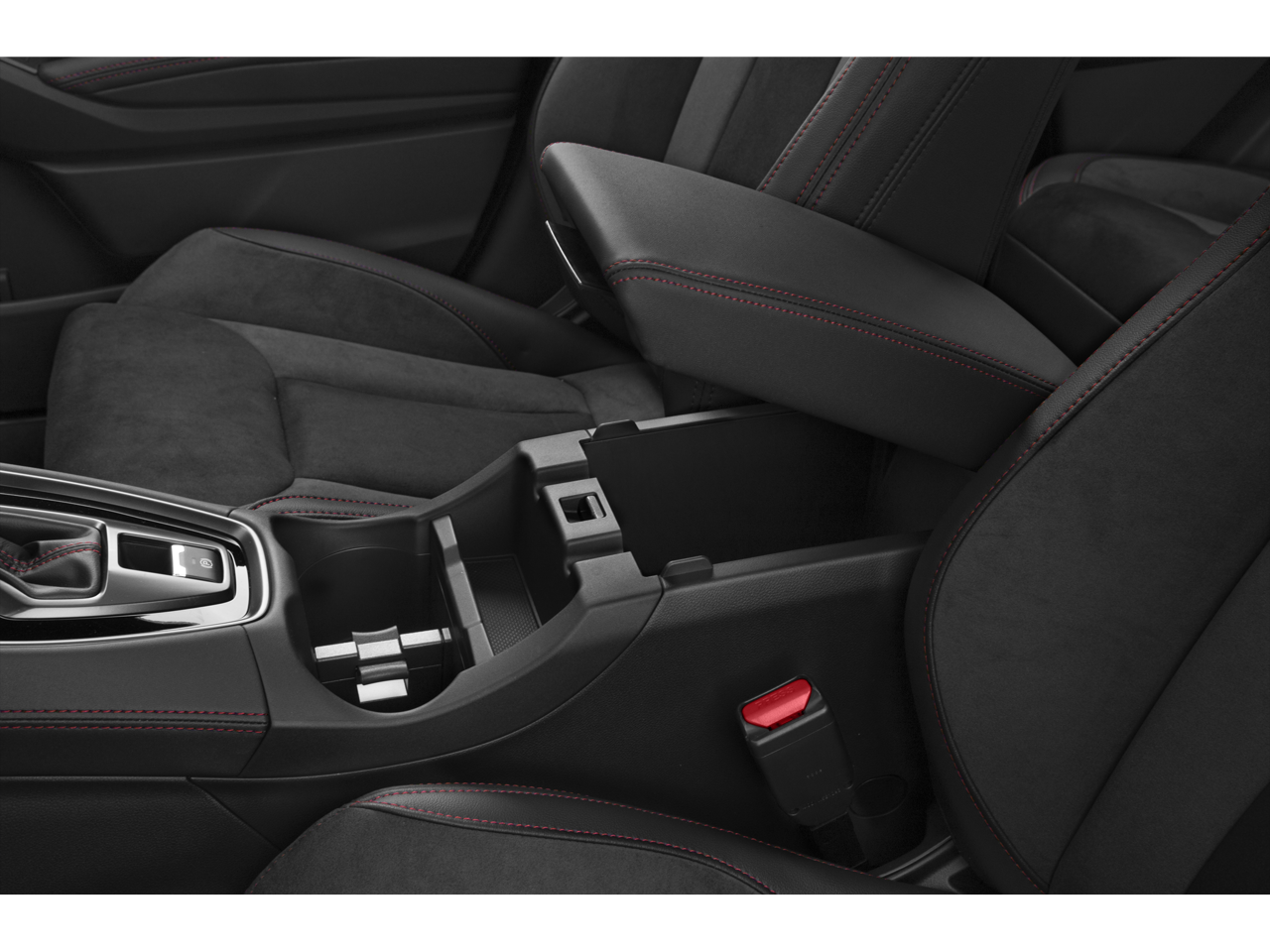 - Ultrasuede and Leather-Trimmed Seats with Red Bolsters