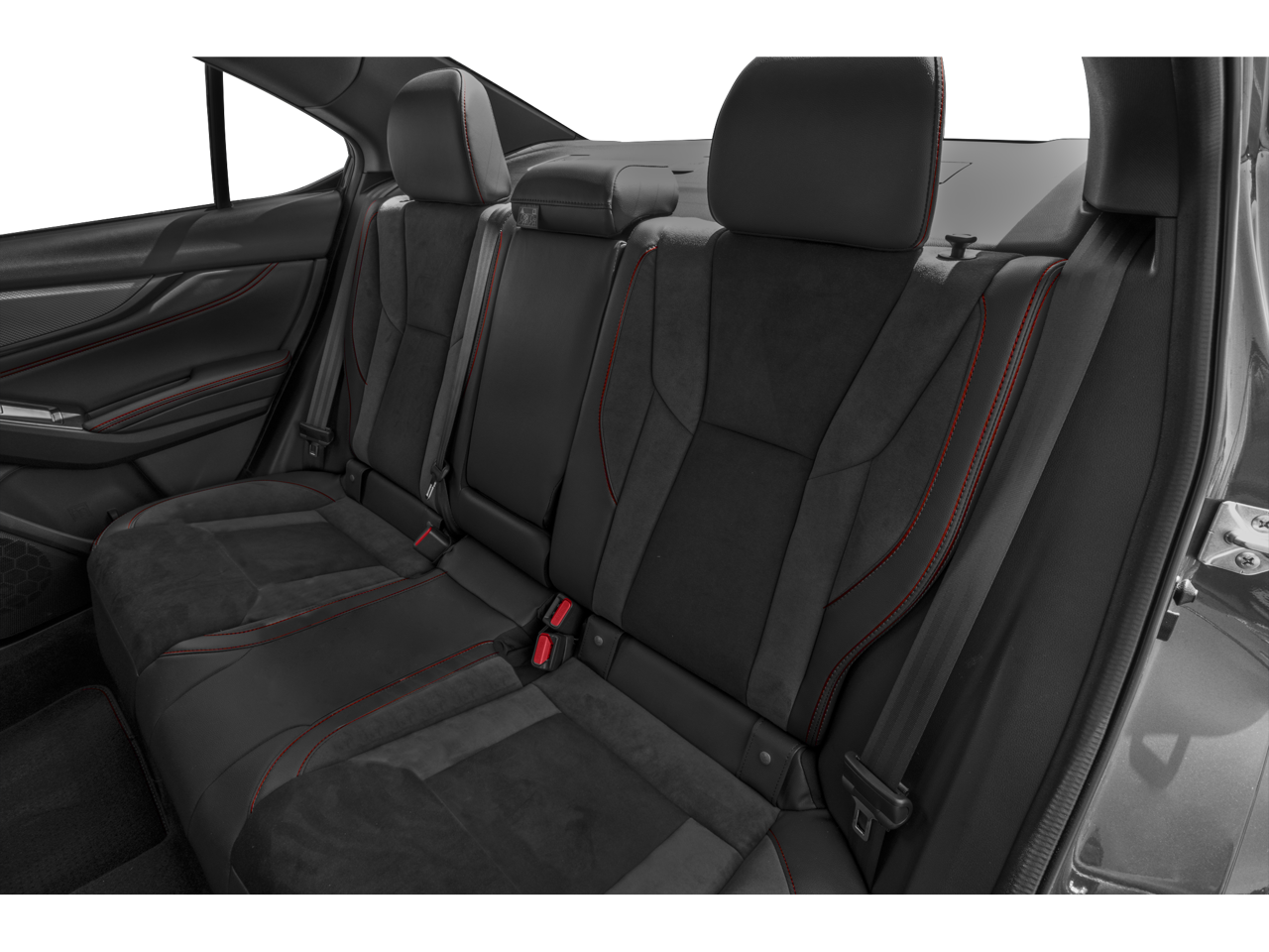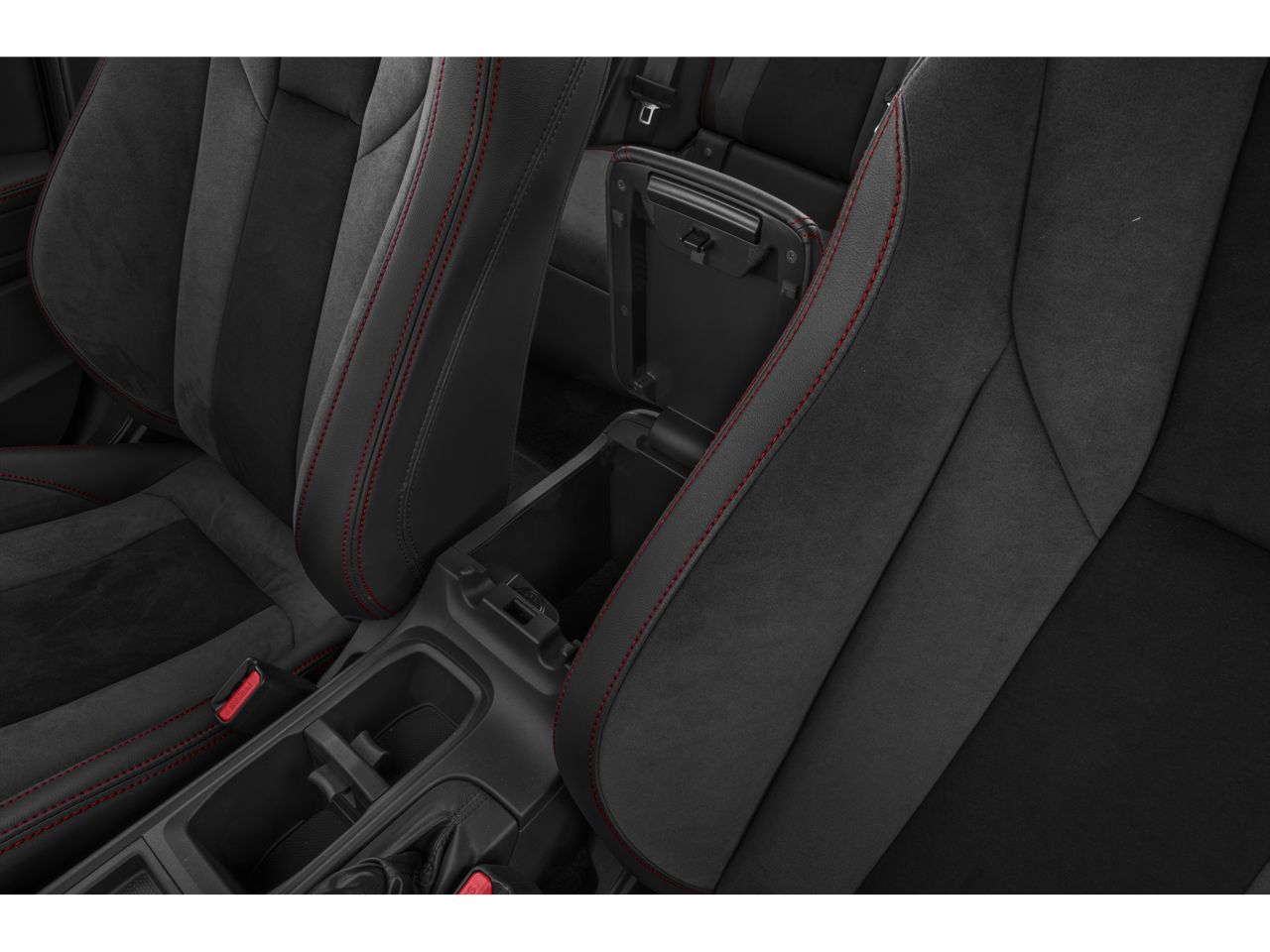 - Ultrasuede and Leather-Trimmed Seats with Red Bolsters