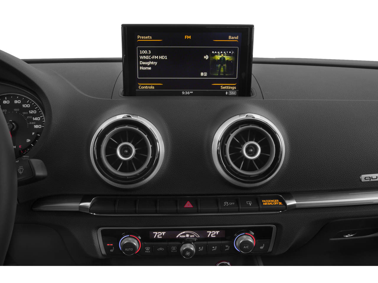 - Radio: Audi Concert AM/FM/SiriusXM w/CD Player -inc: MP3 capability, auxiliary input jack, 12-station presets, speed-dependent volume control, Audi sound system w/10 speakers including front center speaker, subwoofer in rear, 180 watts, 6-channel amplifier, Bluetooth® streaming audio, monochrome driver information system, HD Radio technology, SD card single slot and SiriusXM satellite radio w/90-day trial subscription