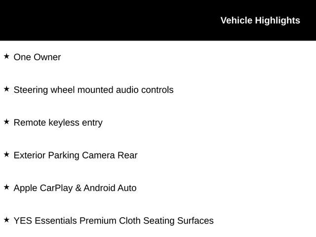 - Radio: AM/FM/MP3 Display Audio -inc: 7" color touchscreen, Apple CarPlay, Android Auto, integrated Bluetooth® w/phonebook transfer, 6 speakers (2 front-door-mounted, 2 tweeters and 2 rear) and iPod, USB and auxiliary input jacks
