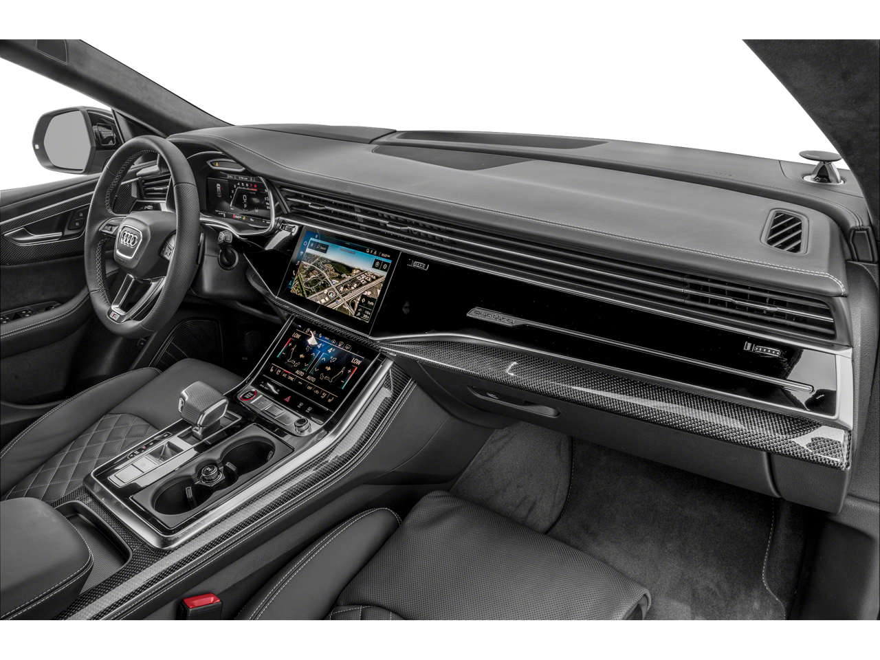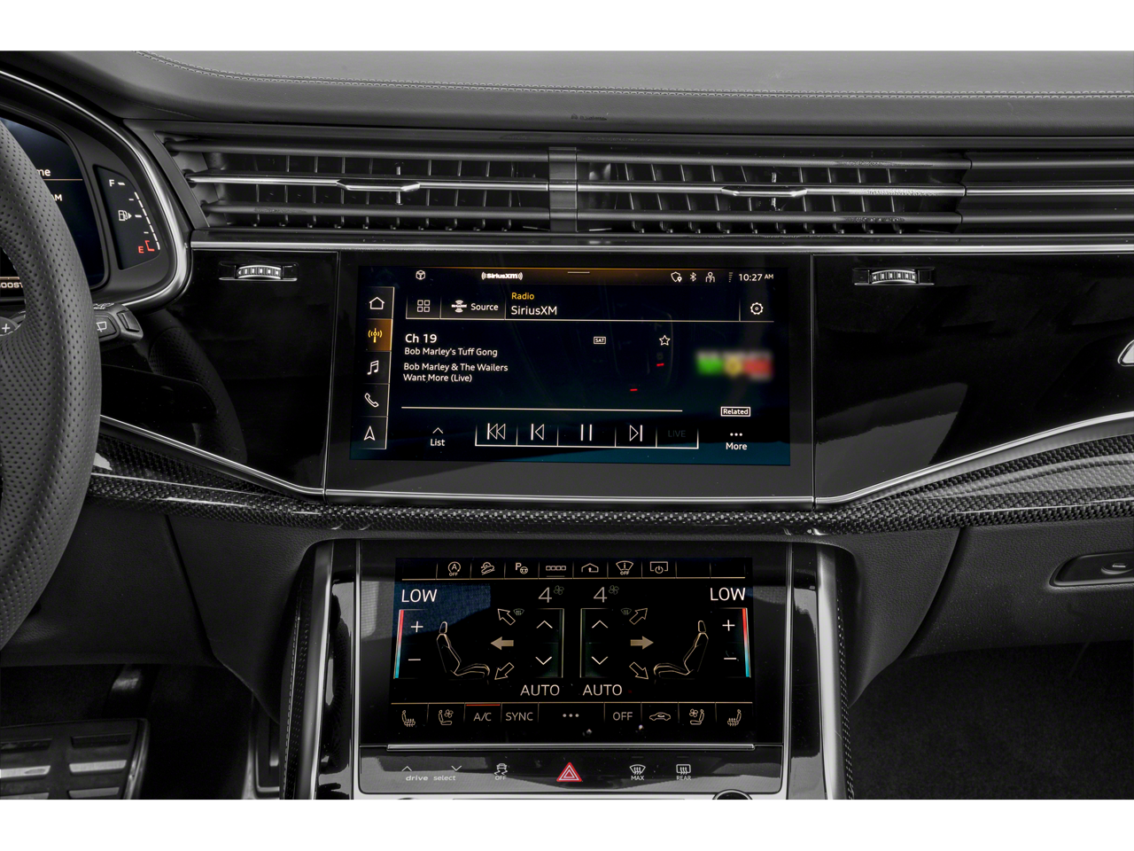 - Radio: Bang & Olufsen 3D Premium Sound System -inc: Audi connect CARE (limited time subscription), Audi Connect PRIME & PLUS (6 month trial subscription), Audi music interface w/front and rear USB ports (data and charge), Audi phone box w/wireless charging and signal booster, MMI navigation plus w/MMI touch response - 10.1" upper, 8.6" lower screen, Audi smartphone interface (wired Android Auto and wireless Apple CarPlay) and SiriusXM all access service (w/3-month trial subscription)