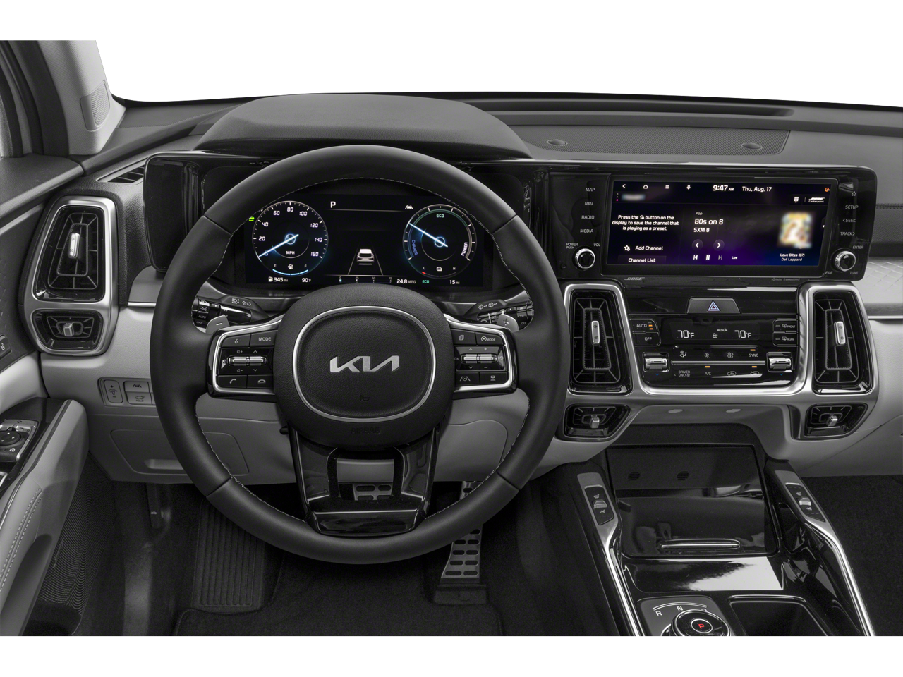 Featuring a captivating Gray exterior, the 2024 Sorento Plug-In Hybrid boasts an impressive array of premium features that cater to your every need: