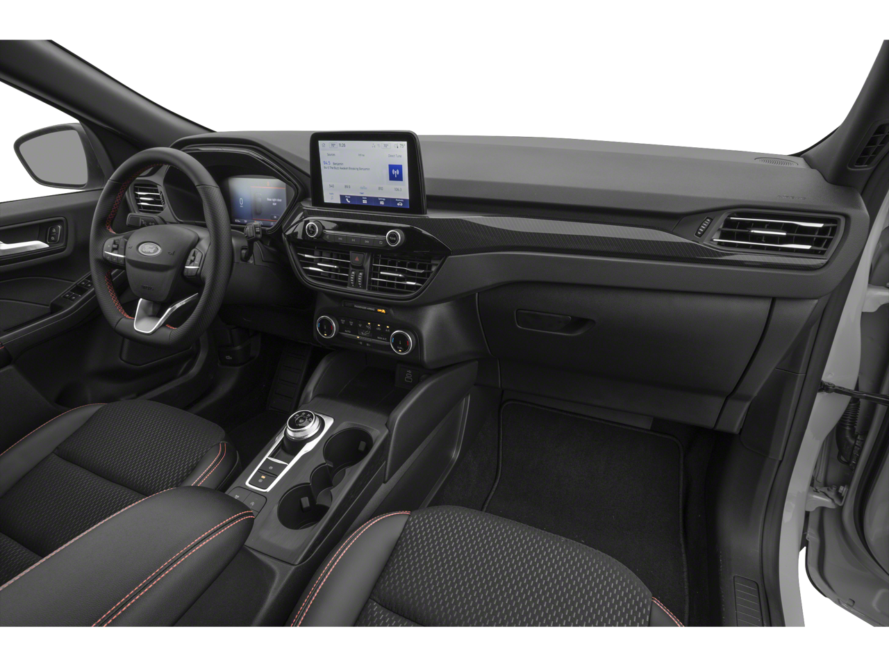 Step inside the Escape ST-Line and you'll be greeted by a wealth of cutting-edge technology and premium comforts. The 13.2 LCD capacitive touch-screen with SYNC 4, wireless Apple CarPlay and Android Auto, and Connected Navigation provide seamless connectivity and intuitive control. The Heated Front Row Seats, Heated Steering Wheel, and Dual-Zone Automatic Climate Control ensure you and your passengers travel in complete comfort, no matter the weather. The Panoramic Vista Roof floods the cabin with natural light, creating a truly open and airy atmosphere.